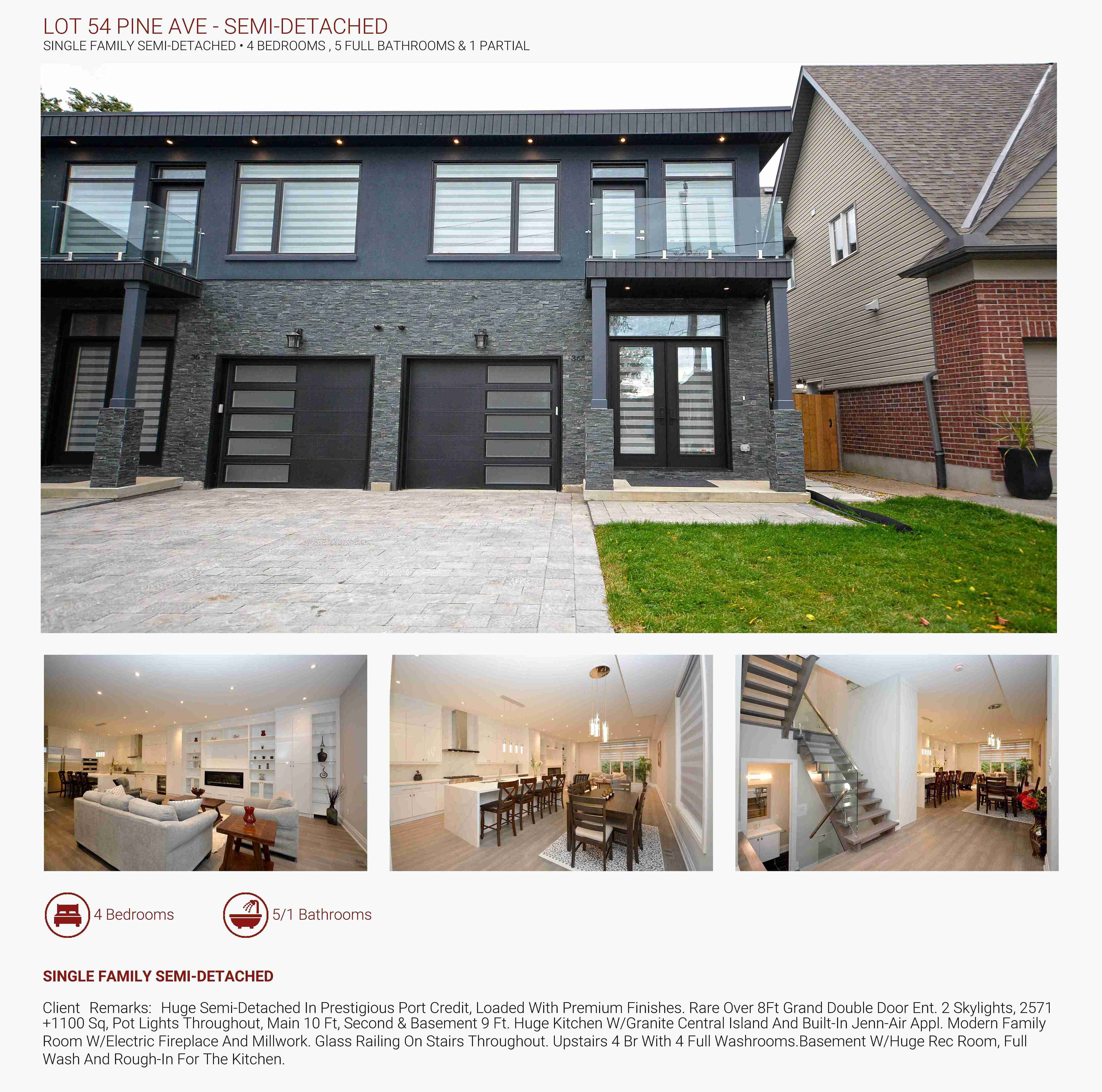 Perfectly nestled in the vibrant Port Credit community, this stunning new custom build offers a luxurious retreat with premium finishes on an expansive pool-sized lot. With approximately 2,571 sqft + 1,100 sqft finished basement, this exceptional semi-detached residence showcases 4 spacious bedrooms, 5 luxurious bathrooms, and contemporary design throughout.