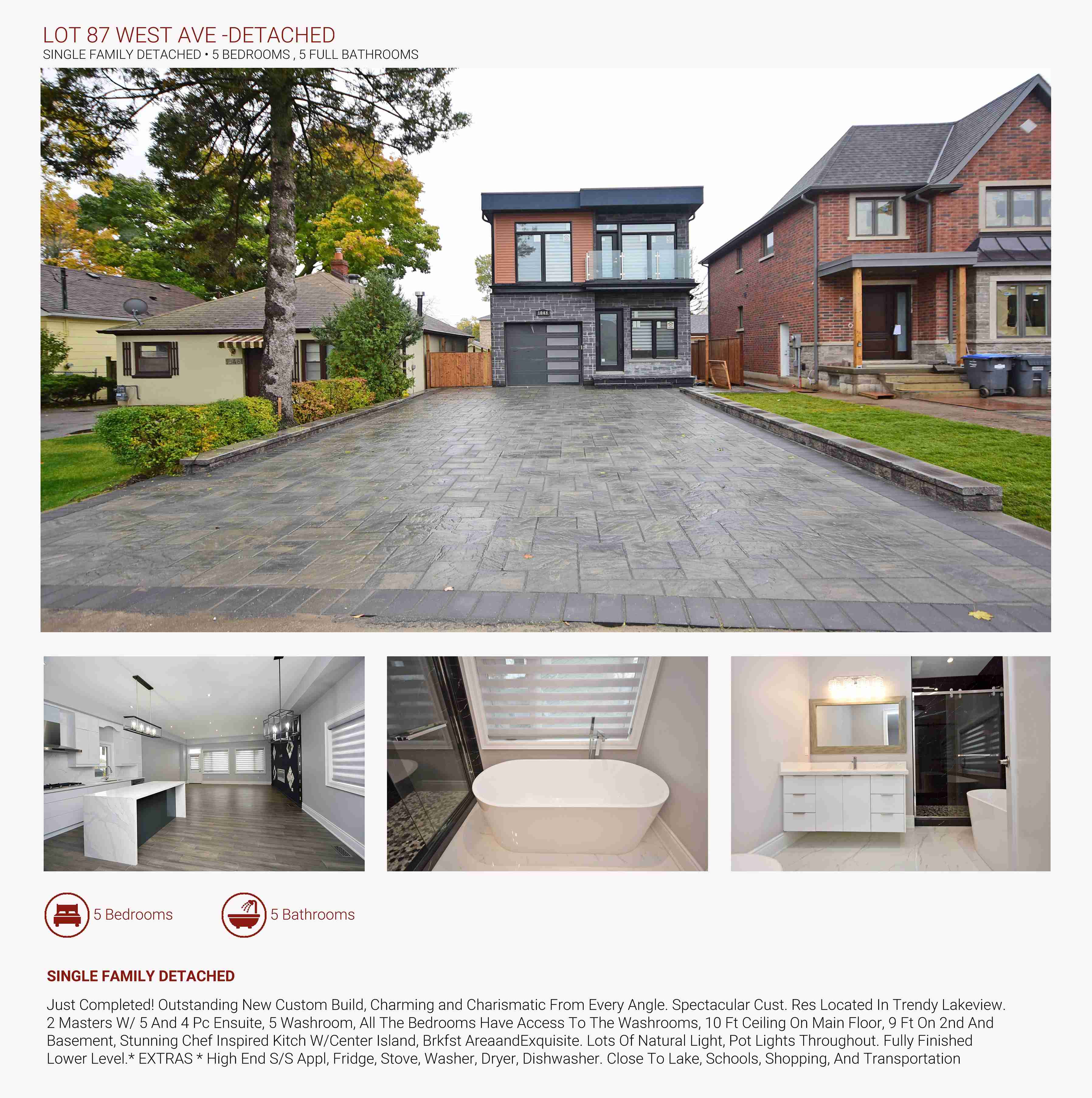 Overview: Just Completed! Outstanding New Custom Build, Charming & Charismatic From Every Angle. 3000+ Sqft + Basement. Spectacular Cust. Res Located In Trendy Lakeview. 2 Masters W/ 5 And 4 Pc Ensuite, 5 Washroom, All The Bedrooms Have Access To The Washrooms, 10 Ft Ceiling On Main Floor, 9 Ft On 2nd And Basement, Stunning Chef Inspired Kitch W/Center Island, Brkfst Area&Exquisite. Lots Of Natural Light, Pot Lights Throughout. Fully Finished Lower Level. Extras: You Won’t Be Disappointed In This Beauty! High-End S/S Appl, Fridge, Stove, Washer, Dryer, Dishwasher. Close To Lake, Schools, Shopping, And Transportation.